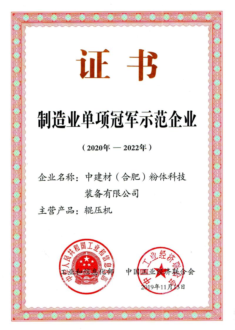 中建材(合肥)粉體科技裝備有限公司前身為合肥水泥研究設計院粉磨研究所,2011年8月,經合肥水泥研究設計院粉體工程公司與肥西節(jié)能設備廠聯(lián)合改制組建而成,國家高新技術企業(yè),全國首批“制造業(yè)單項冠軍示范企業(yè)”,中國建材集團“六星企業(yè)”。